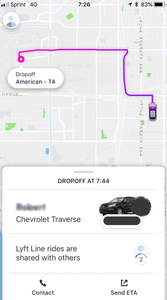 移動は、アメリカでいま主流だという「Lift」というアプリを使用しました!