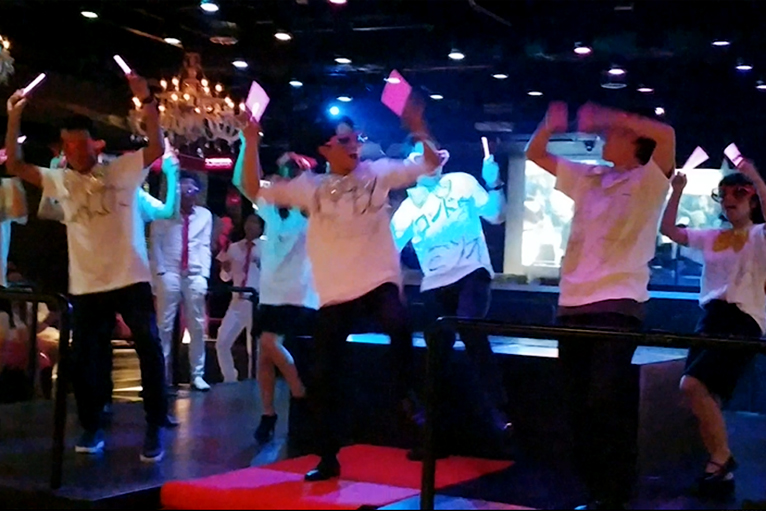新卒メンバーによるパフォーマンスは昨年からの恒例コンテンツ。 入社してからこの2週間、新卒組は毎日のように遅くまで残り練習してきました。 DJ OZMA(ちょっと懐かしい…)に合わせたダンスと自己紹介で会場を盛り上げます!
