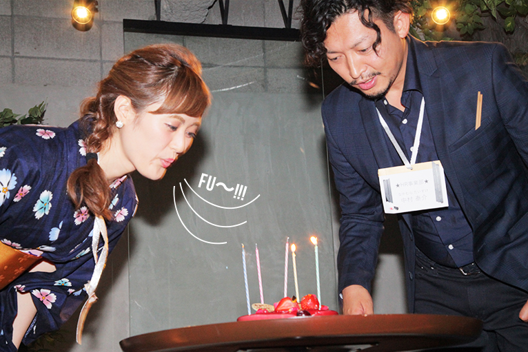 毎月恒例、7月生まれのメンバーをバースデーケーキでお祝いします。