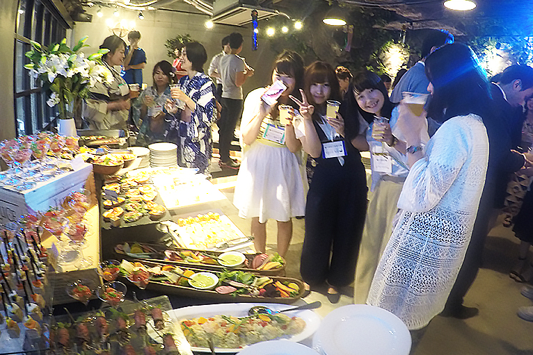 女性社員は浴衣で登場。皆さんとってもお似合いです…!気分はまるで夏祭り。