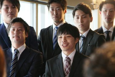 決意表明を終え、だいぶ緊張もほぐれてきた新卒の皆さん。