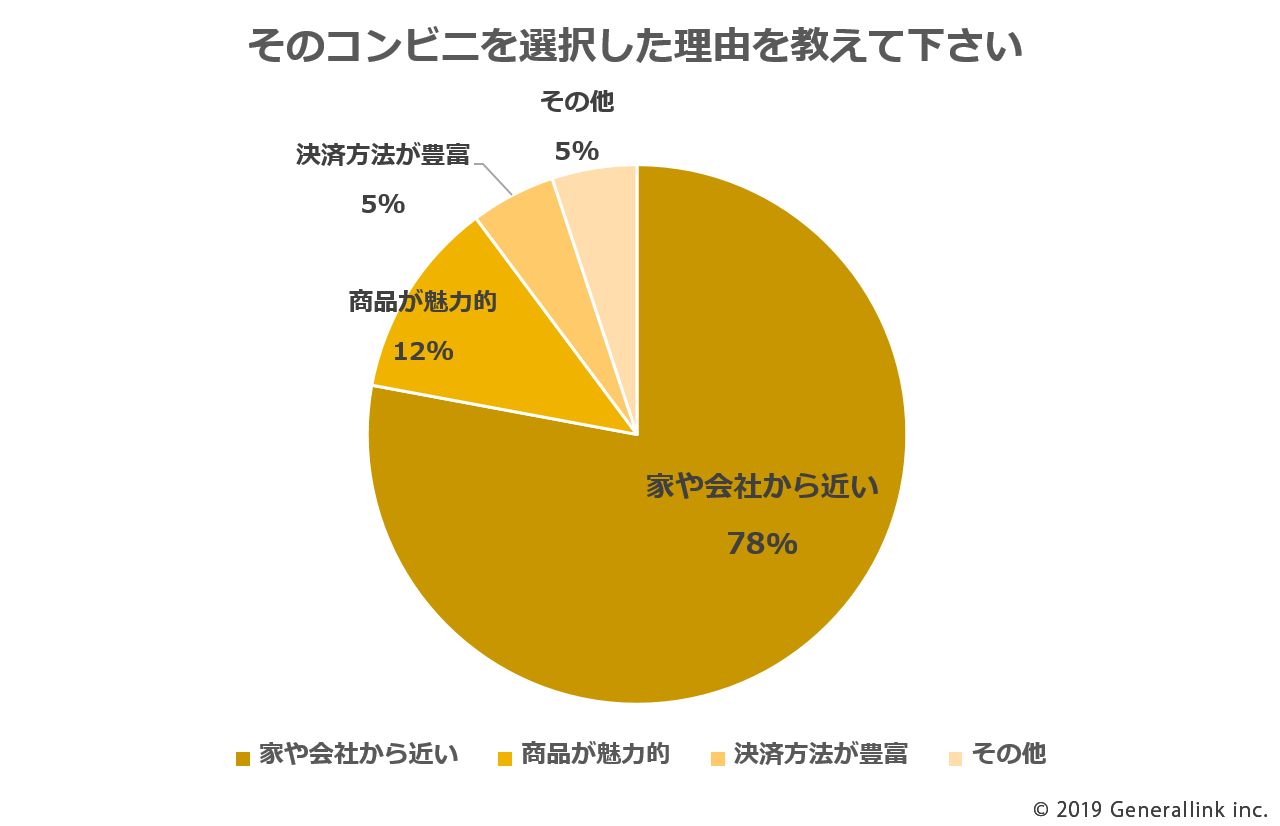続いて、選択した理由を尋ねると「近い」が78%で圧倒的!コンビニは利便性が重要視されます。
