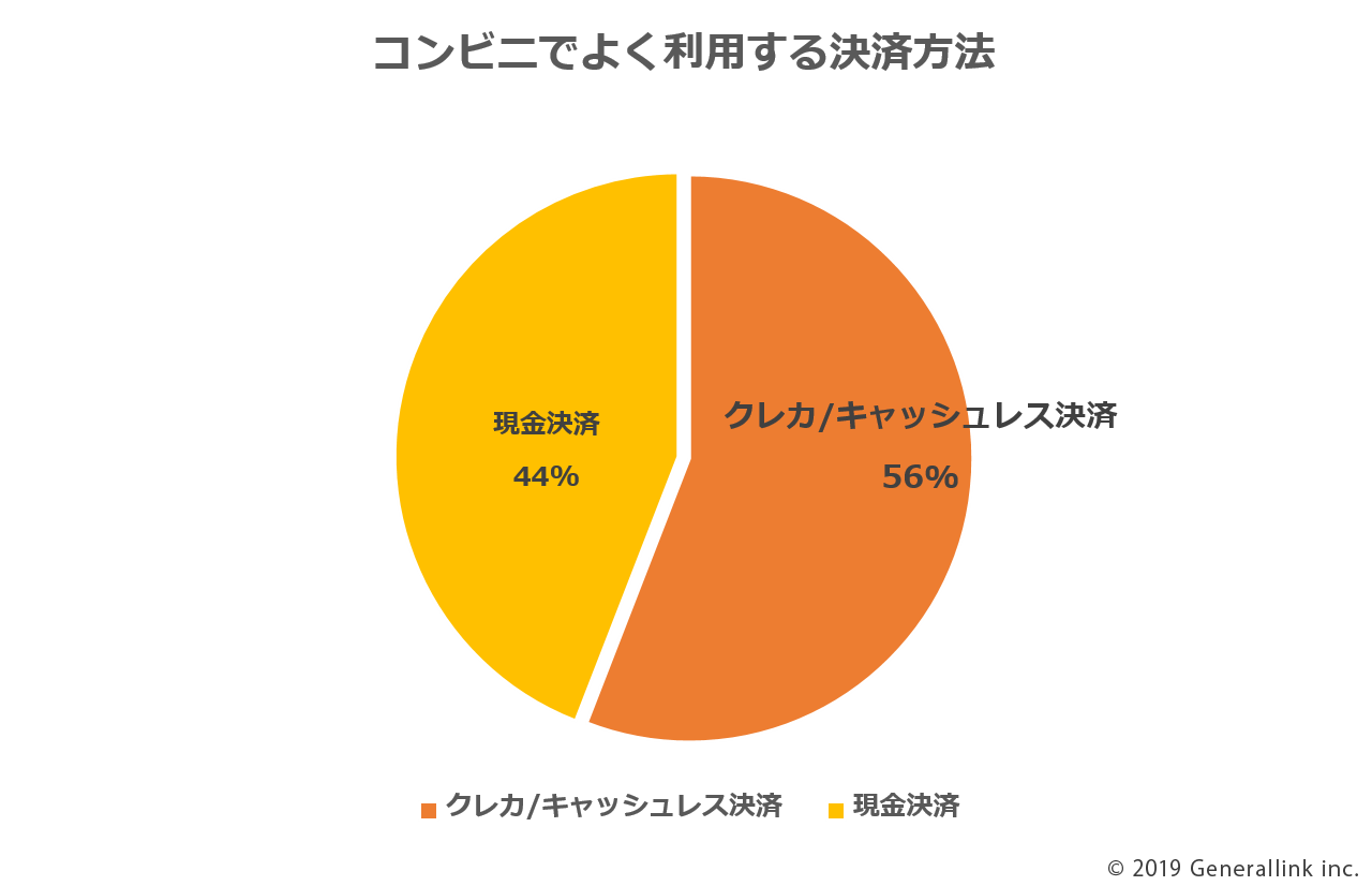 ゼネラルリンクの社員は、クレカ・キャッシュレス支払い派が過半数(約56%)でした。この利用率を「少ない」と思う人もいませんか?実際は逆です。