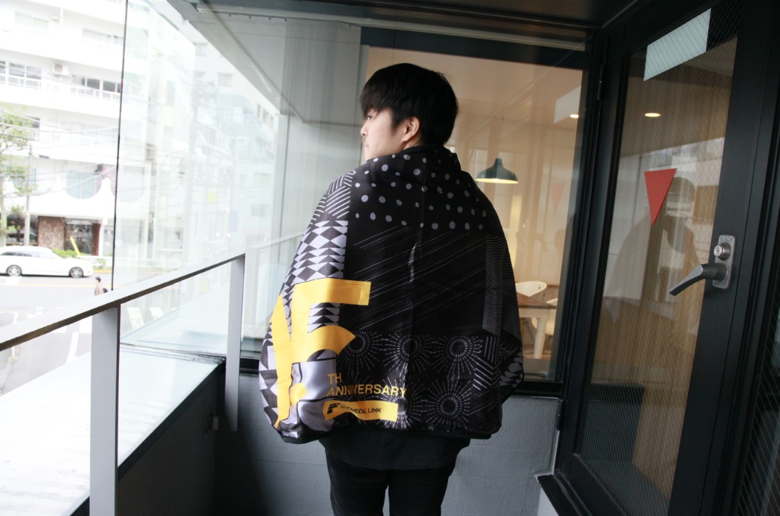 2つめは、社員デザインの厚手ブランケットです。このデザインは、わたしたちが大事にしている、コアバリューを表した柄が全面プリントされてます。
