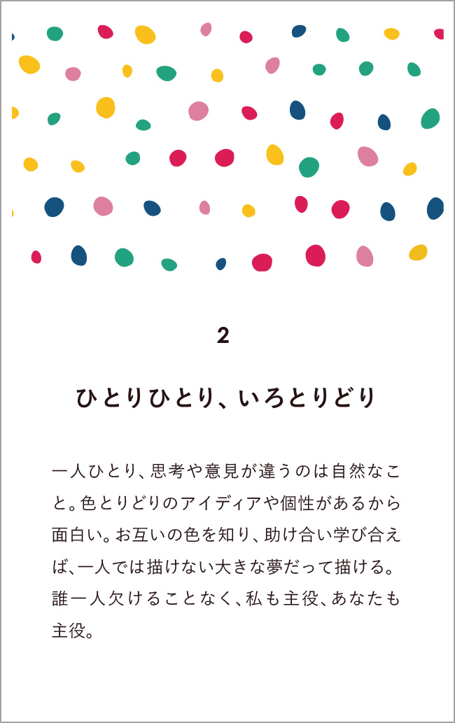 選んだコアバリューは・・・「ひとりひとり、いろとりどり」