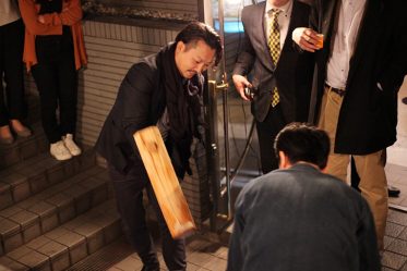 「ヨイショー!」という掛け声と餅をつく音が夜の渋谷に響きます。