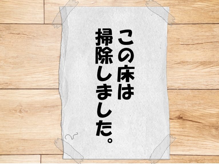 とか訳のわからない方向にいきそうだったので、シンプルにその紙をそっと剥がし、いつも通りほうきと雑巾で床をふいて掃除をした。普通にいつも通り雑巾は真っ黒になったし、ちりとりの中には丸めた張り紙が入っているので、なんならいつもよりごみが増えた。